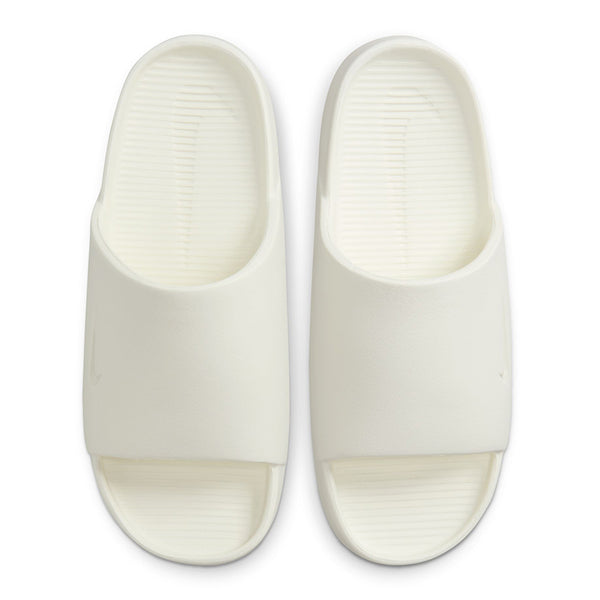 Nike Calm Women's Slides When it comes to these slides, it's all in the name. Take a deep breath and slip into a minimalist look with maximalist cushioning. Contoured foam is seamlessly created from one piece, and cradles your feet to help keep them in place. To top it off, the water-friendly design dries quickly—making it ideal for relaxing poolside. You get all of the style, none of the effort. It's time for some Calm. Soft yet responsive foam provides amazing comfort and dries quickly—no matter where your day takes you. Subtle texture pattern on the footbed adds grip so your feet stay in place. Full-length rubber outsole gives you traction and durability.